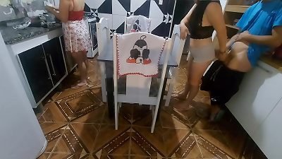 Cleaning woman Having orgasm Getting Her cootchie nips stimulated With Vacum Cleaner By 2 boys In The